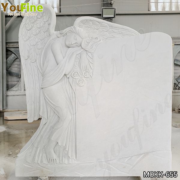 Hand Carved Large Size White Marble Angel Headstone from Factory Supply MOKK-655